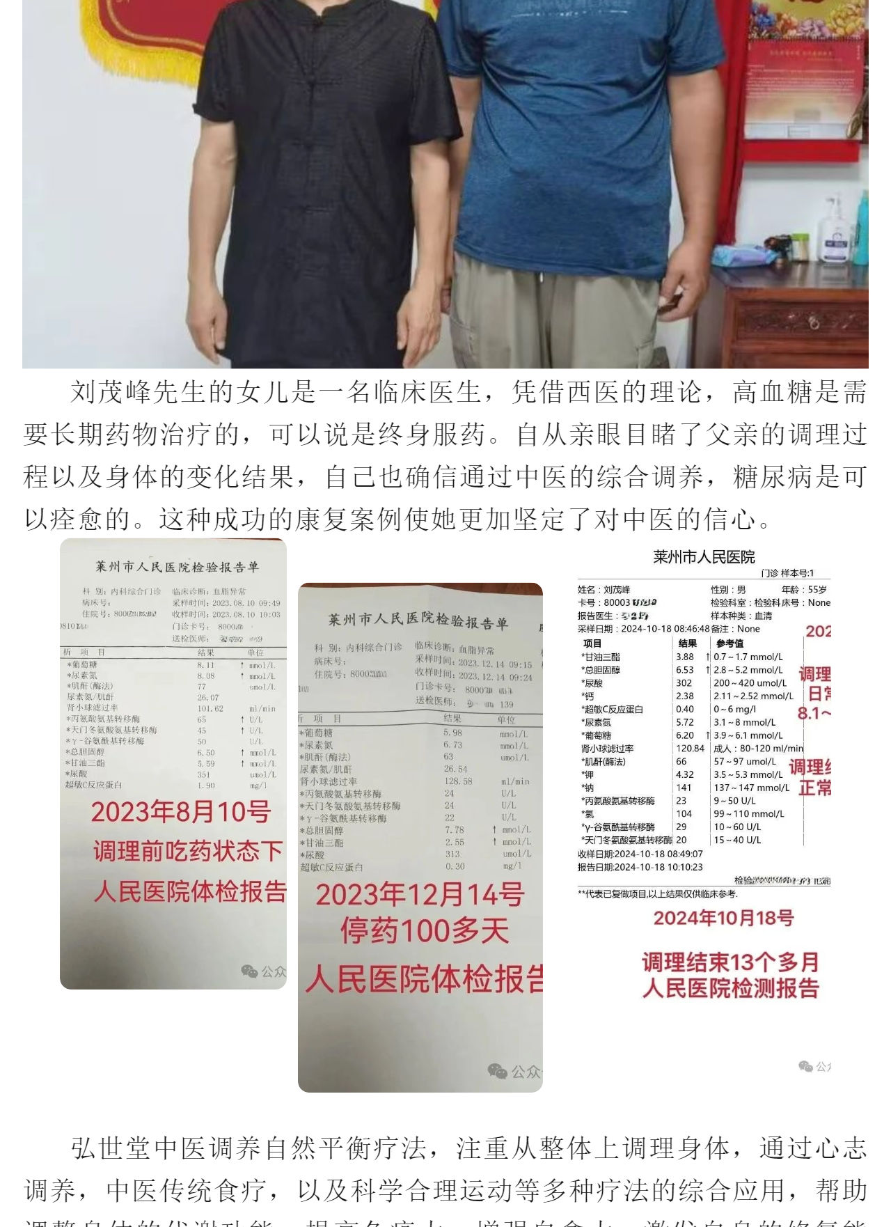 弘世堂中医综合调养助力糖尿病康复,刘茂峰成功摆脱高血糖困扰!
