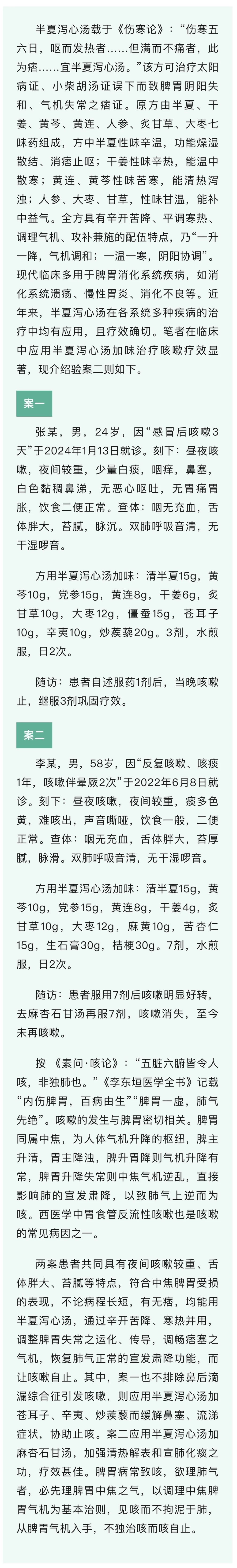 一升一降,气机调和,半夏泻心汤不独治咳而咳自止