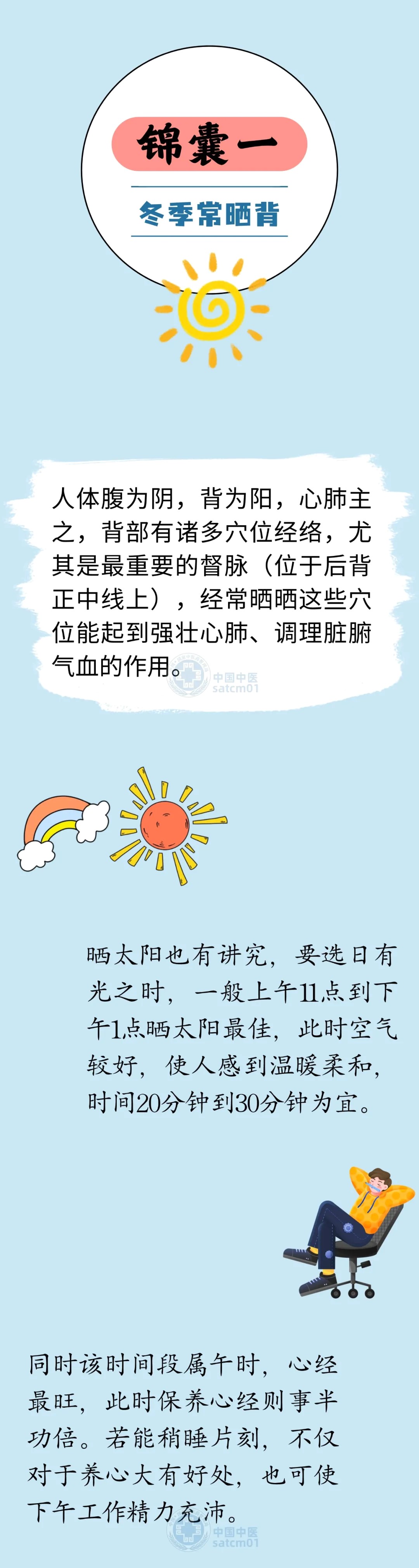 冬天悄然来临,随着气温骤然下降,此时也进入敛阳、补阳的好时节,阳气虚弱、气血不足的人更应该顺应自然规律,补肾防寒护阳气。冬季究竟该怎么养?送您五大养阳锦囊~